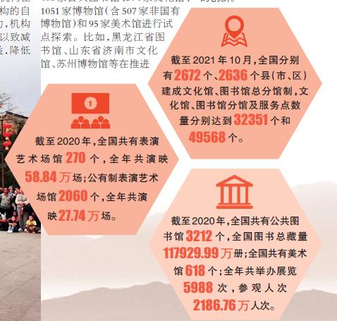 近年來(lái),各地結(jié)合決勝脫貧攻堅(jiān)、推動(dòng)鄉(xiāng)村振興和新時(shí)代文明實(shí)踐中心建設(shè),加快完善基層公共文化設(shè)施網(wǎng)絡(luò),特別是一些中西部省份,在歷史欠賬較多、經(jīng)濟(jì)下行壓力大的情況下,拿出真金白銀推進(jìn)改革。截至2020年年底,全國(guó)已建成村、社區(qū)綜合性文化服務(wù)中心57萬(wàn)多個(gè),基本實(shí)現(xiàn)全覆蓋。