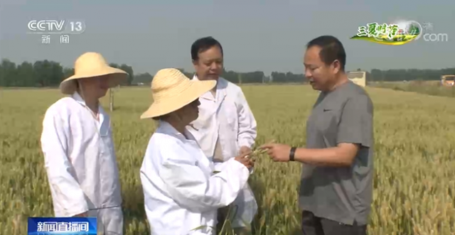 河南沁陽的小麥豐收在即,在李橋村這家專業合作社的麥田里,農業部門的技術人員正在進行小麥測產,同時為農民講解麥收前的管理事項。