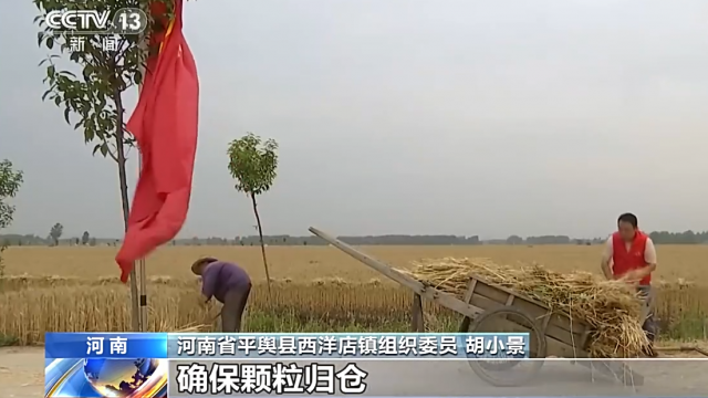河南省平輿縣西洋店鎮組織委員 胡小景:全鎮共成立黨員志愿服務隊65個,幫助困難群眾收割麥子兩千多畝,在未來幾天,我們將持續投入更多的人力物力,幫助困難群眾收割小麥,確保顆粒歸倉。