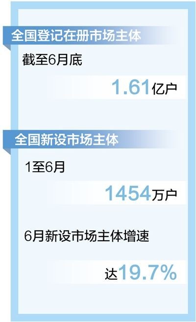 截至6月底市場主體達1.61億戶 “四新經濟”企業占企業總量比例達46.4%