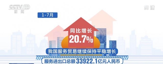 央視網(wǎng)消息:今年1—7月份,我國服務(wù)進出口總額達33922.1億元,我國服務(wù)貿(mào)易繼續(xù)保持平穩(wěn)增長。