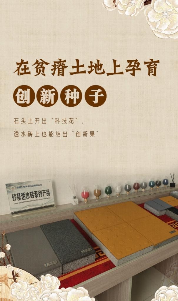 這家環(huán)保科技公司也是武鄉(xiāng)縣近幾年培育的本土創(chuàng)新型企業(yè)。公司負責人郝晉庭介紹說,紅磚“吃”土地,又不環(huán)保。2014年,公司轉(zhuǎn)向新型透水磚行業(yè),研發(fā)出的新產(chǎn)品透水效果一流,耐堵耐凍,獲得多項國家發(fā)明專利。