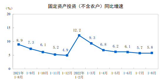 2022年1—8月份全國固定資產投資增長5.8%