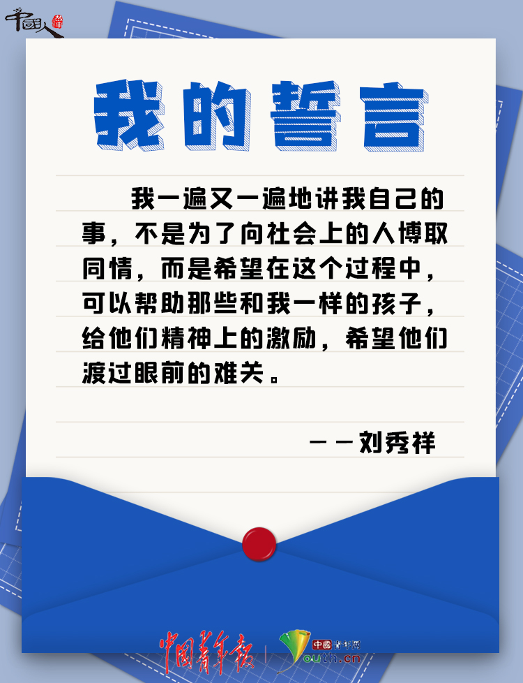 他說:“我一遍又一遍地講我自己的事,不是為了向社會上的人博取同情,而是希望在這個過程中,可以幫助那些和我一樣的孩子,給他們精神上的激勵,希望他們渡過眼前的難關。”