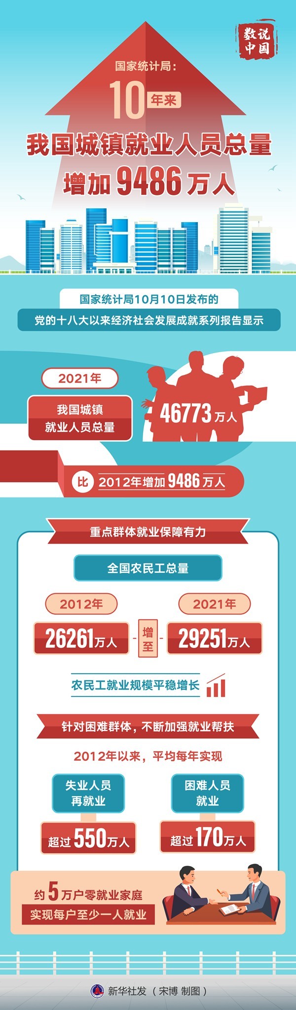 國家統(tǒng)計局:10年來我國城鎮(zhèn)就業(yè)人員總量增加9486萬人