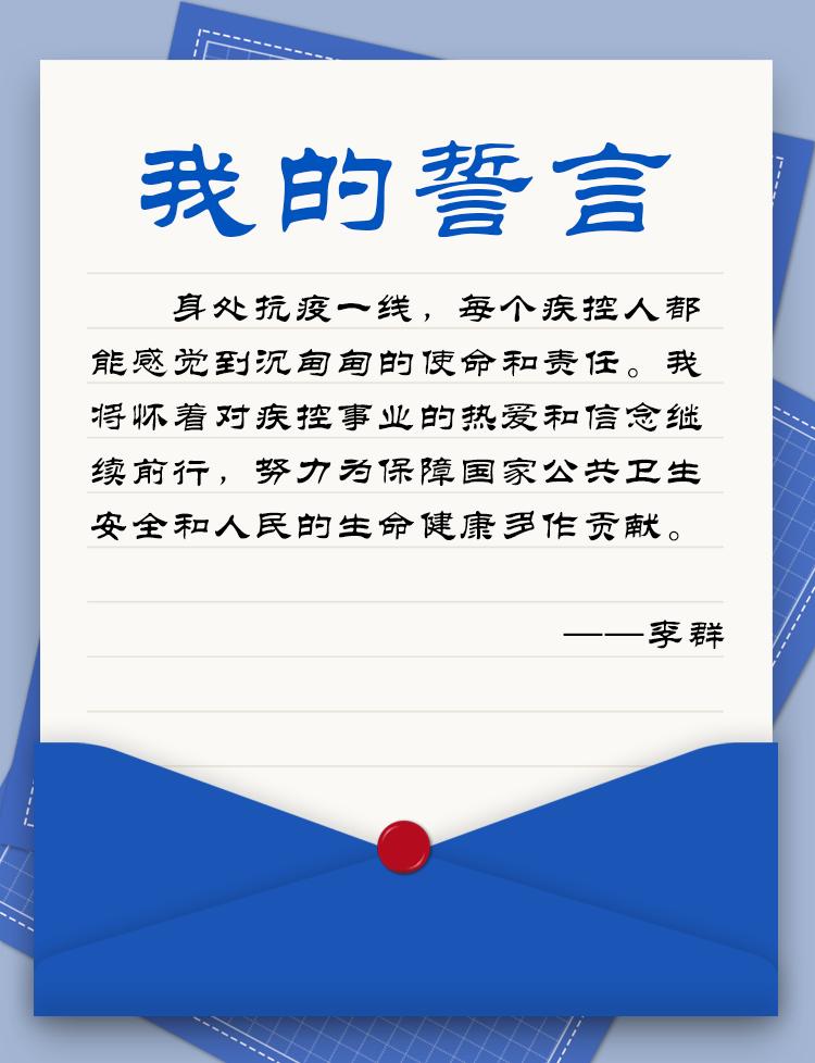 彼時,身處抗疫一線,每個疾控人都能感覺到沉甸甸的使命和責任。李群至今還記得,在支部大會上,當同志們齊唱到《國歌》中那句“把我們的血肉筑成我們新的長城”時,很多人都熱淚盈眶。“那是最真摯、最樸素的感情流露?!崩钊赫f。