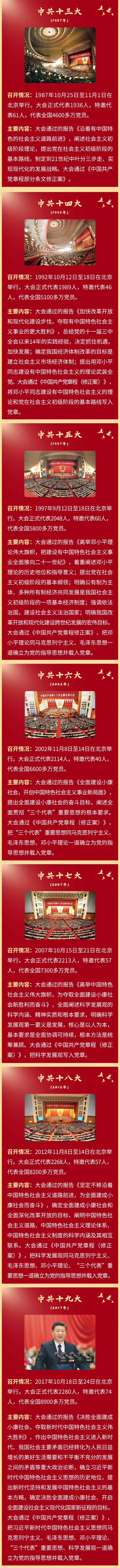 黨的二十大即將隆重開幕。此次會議是在全黨全國各族人民邁上全面建設社會主義現代化國家新征程、向第二個百年奮斗目標進軍的關鍵時刻召開的一次十分重要的大會。黨建網微平臺依據《中國共產黨一百年大事記》整理了黨的一大至十九大“極簡史”,邀您一起學習了解中國共產黨歷次全國代表大會概況。
