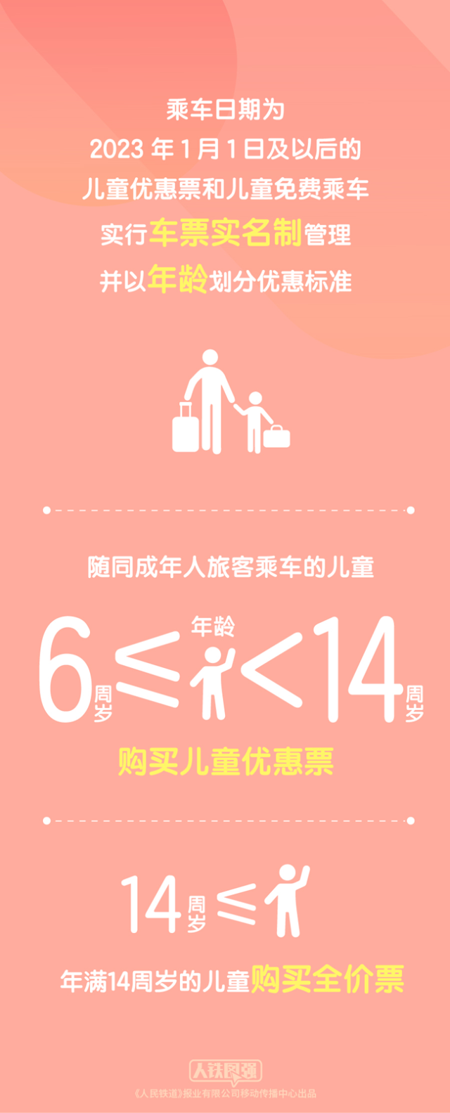 《客規》明確,乘車日期為2023年1月1日及以后的兒童優惠票和兒童免費乘車實行車票實名制管理并以年齡劃分優惠標準。