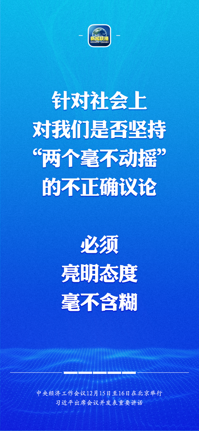 爬坡過坎,關鍵是提振信心。不久前召開的中央經濟工作會議明確指出,針對社會上對我們是否堅持“兩個毫不動搖”的不正確議論,必須亮明態度,毫不含糊。要從制度和法律上把對國企民企平等對待的要求落下來,從政策和輿論上鼓勵支持民營經濟和民營企業發展壯大。