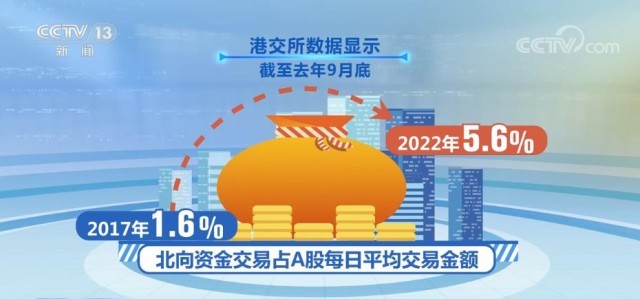 事實上,北向資金從去年末就在持續加大對中國資產的配置。國際金融協會統計顯示,去年11月流入中國資本市場的資金達85億美元,創去年單月新高。港交所數據顯示,截至去年9月底,北向資金交易占A股每日平均交易金額,由2017年的1.6%,升至2022年的5.6%。