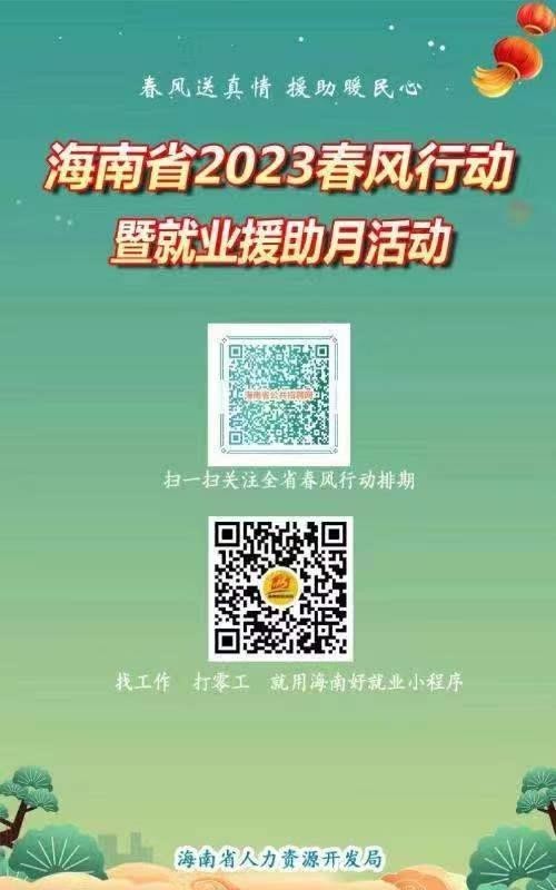 近日,人力資源社會(huì)保障部推出的2023年春風(fēng)行動(dòng)暨就業(yè)援助月活動(dòng)正在各地火熱開(kāi)展。今年,多地還出現(xiàn)了直播帶崗這一新的招聘會(huì)模式。人社部將及時(shí)發(fā)布各地的活動(dòng)情況,送崗位到勞動(dòng)者身邊。大家可以通過(guò)掃描下方二維碼,進(jìn)入網(wǎng)站鏈接或微信小程序進(jìn)行查看。