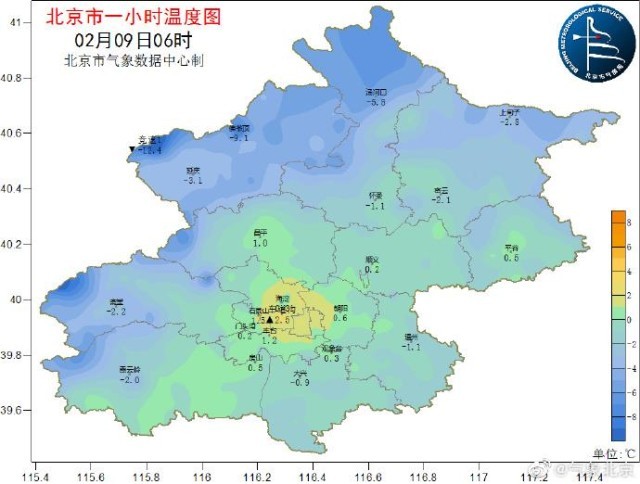 2月9日6時45分,北京南郊觀象臺氣溫為0℃,地面溫度-1.7℃。目前北京市城區氣溫在0~2℃之間,受降雪天氣影響,預計今天白天最高氣溫只有1℃,降溫明顯,體感陰冷,外出時還需注意防寒保暖,謹防感冒和心腦血管疾病的發生。