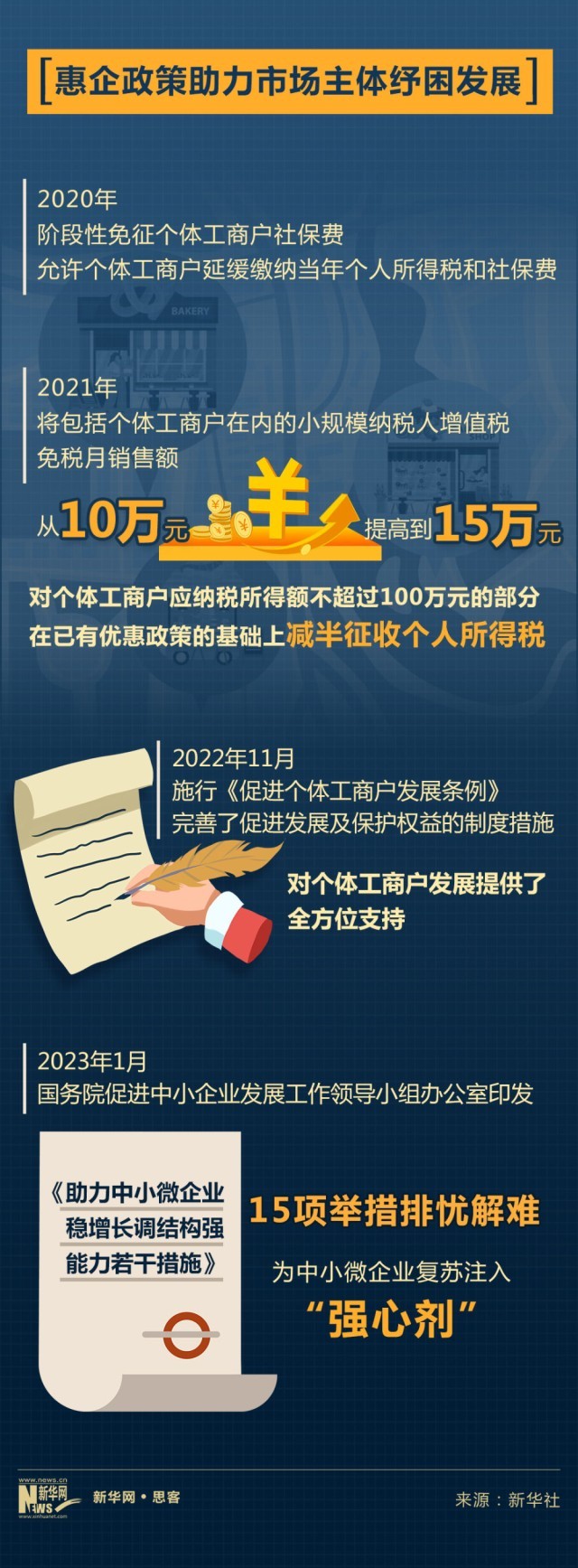 煥發個體經濟生機活力,離不開稅收“輸血給氧”。近年來,各地區、各部門也出臺了一系列幫扶個體工商戶等小微市場主體發展的政策措施,精準扶困。