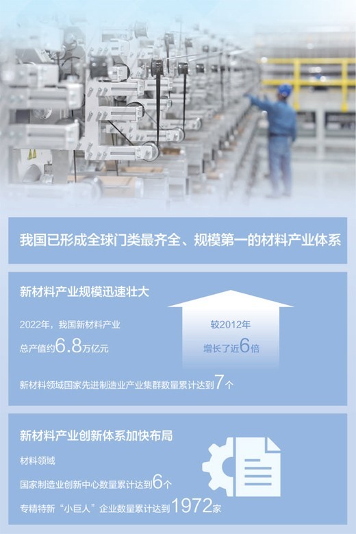 創新體系加快布局。材料領域國家制造業創新中心數量累計達到6個,占國家制造業創新中心總數的25%;專精特新“小巨人”企業數量累計達到1972家,約占總數的22%,新材料產業發展生態日益完善。