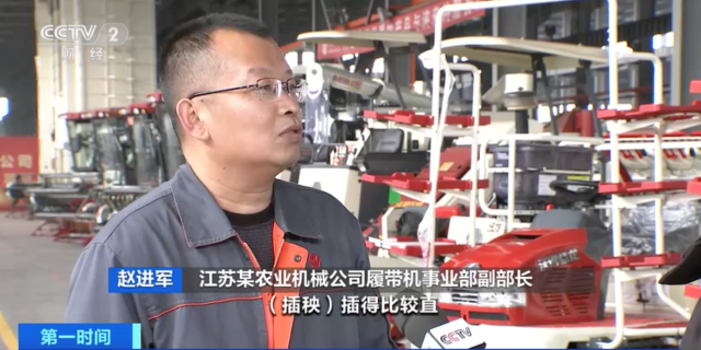 江蘇某農業機械公司履帶機事業部副部長 趙進軍:利用北斗定位技術,插秧插得比較直,誤差比較小,另外它可以節約一個人工。