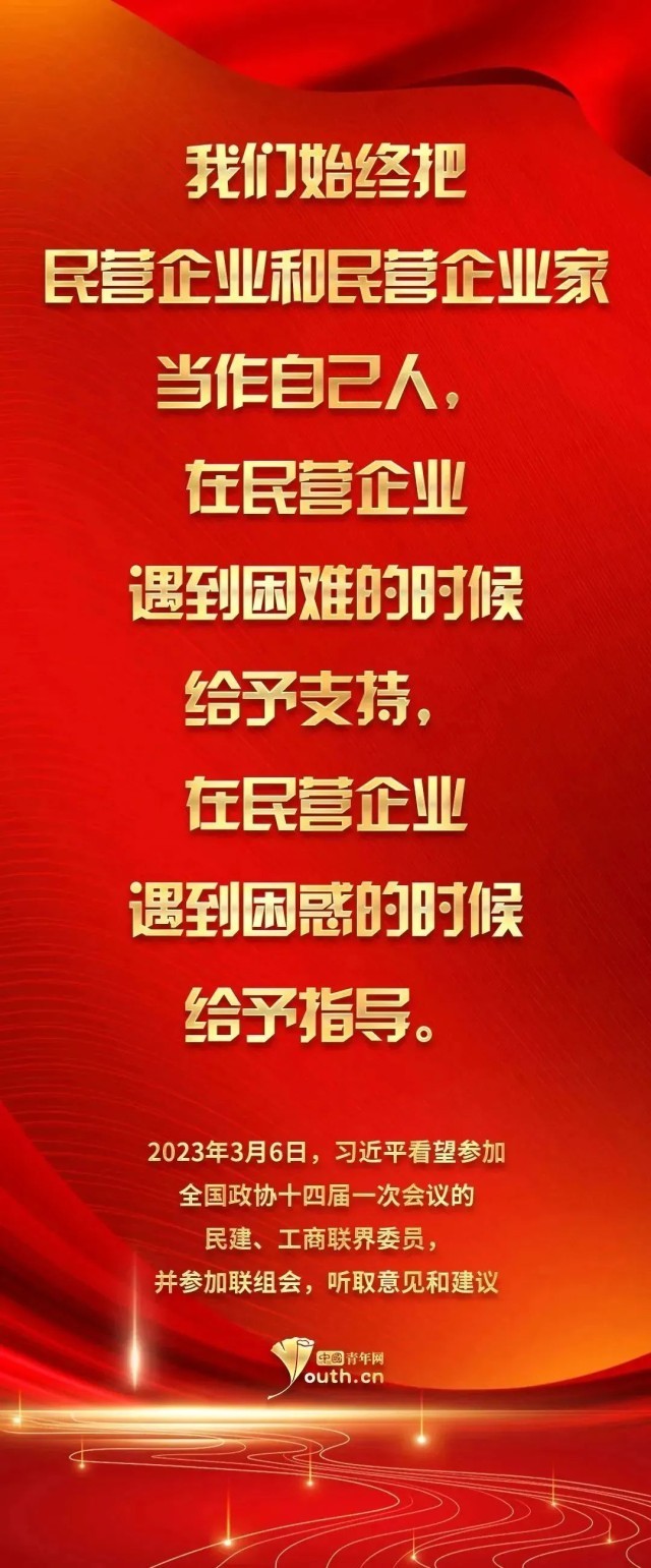 習(xí)總書記的講話為我國民營經(jīng)濟(jì)高質(zhì)量發(fā)展樹立了信心、指明了方向。黨中央始終堅持“兩個毫不動搖”、“三個沒有變”,始終把民營企業(yè)和民營企業(yè)家當(dāng)作自己人。習(xí)總書記充分肯定了民營經(jīng)濟(jì)的重要作用與成績,表明了黨和國家支持并鼓勵民營經(jīng)濟(jì)發(fā)展的堅定決心,同時也對民營經(jīng)濟(jì)高質(zhì)量發(fā)展提出了新要求。這都為民營經(jīng)濟(jì)健康發(fā)展、高質(zhì)量發(fā)展提供了重要遵循,其中也有勉勵民營經(jīng)濟(jì)再接再厲之意。