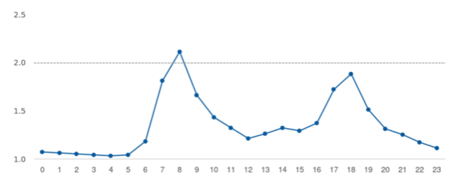 晚高峰期間,東、西、北二、三、四、五環,東六環部分路段,以及萬泉河路至圓明園西路、長安街及其延長線、通惠河北路、蓮花池東路至蓮石東路等城區道路車流集中,京藏高速、京承高速、京通快速、京港澳高速、機場高速等高速公路出京方向將出現集中車流,高峰時段預計為17:00至19:00。
