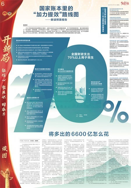 3月7日,《中國青年報(bào)》兩會特刊推出可視化版面解讀預(yù)算報(bào)告中的重要數(shù)據(jù)“70%”——連續(xù)5年全國財(cái)政支出70%以上用于民生。通過突出這一大數(shù)據(jù),凸顯本屆政府執(zhí)政為民的理念。整版通過數(shù)據(jù)的變化,解讀預(yù)算報(bào)告,呈現(xiàn)“積極財(cái)政政策提力增效的路線圖”。