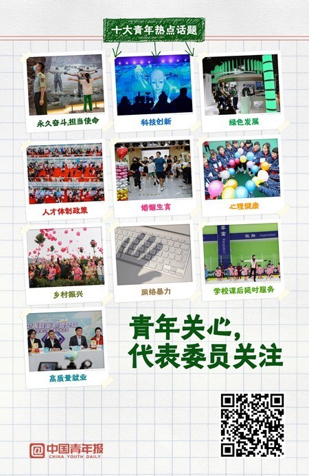兩會前,團(tuán)中央權(quán)益部、中國青年報(bào)社等機(jī)構(gòu)聯(lián)合梳理了青年關(guān)心的十大熱點(diǎn)話題。兩會期間,代表委員進(jìn)行了回應(yīng)。本報(bào)以漫畫形式進(jìn)行梳理,形式新穎,被多家媒體轉(zhuǎn)載。