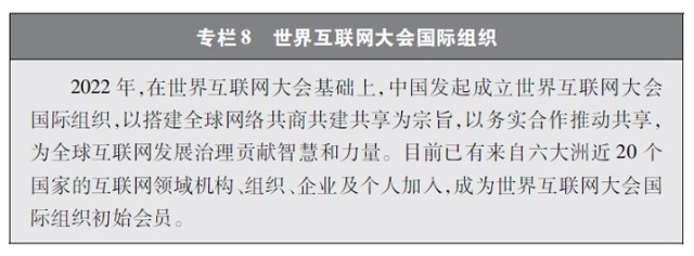 ——為全球互聯網治理貢獻中國經驗、中國智慧和中國方案。網絡空間是人類共同的活動空間,需要世界各國共同建設、共同治理。中國不斷探索依法治網的科學途徑和方案,在立法、執法、司法、普法一體推進中形成了中國特色治網之道,為全球互聯網治理提供了中國經驗。中國積極參與全球互聯網治理,推動發起《二十國集團數字經濟發展與合作倡議》《全球數據安全倡議》等多個倡議、宣言,創造性提出網絡主權原則,倡導《聯合國憲章》確立的主權平等原則適用于網絡空間,貢獻了中國智慧和中國方案。
