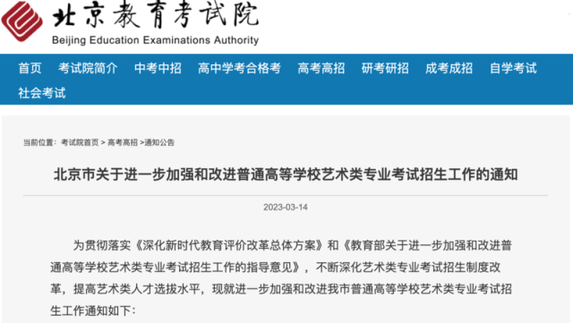 明年起北京6類藝術類專業全市統考 在京招生高校原則上直接采用統考成績