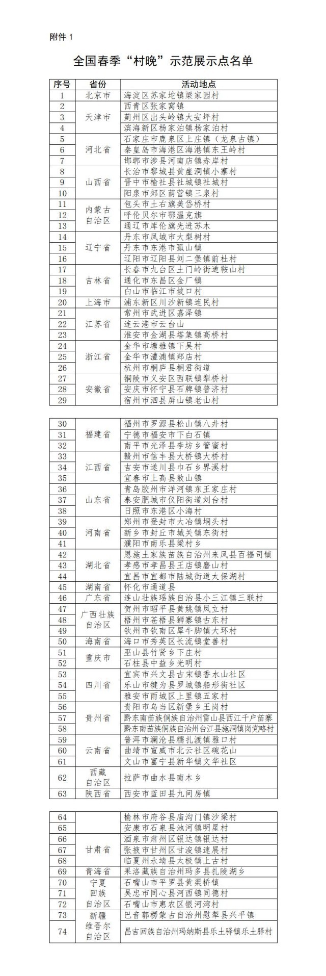 文旅部公布2023年“四季村晚”主會(huì)場和示范展示點(diǎn)名單