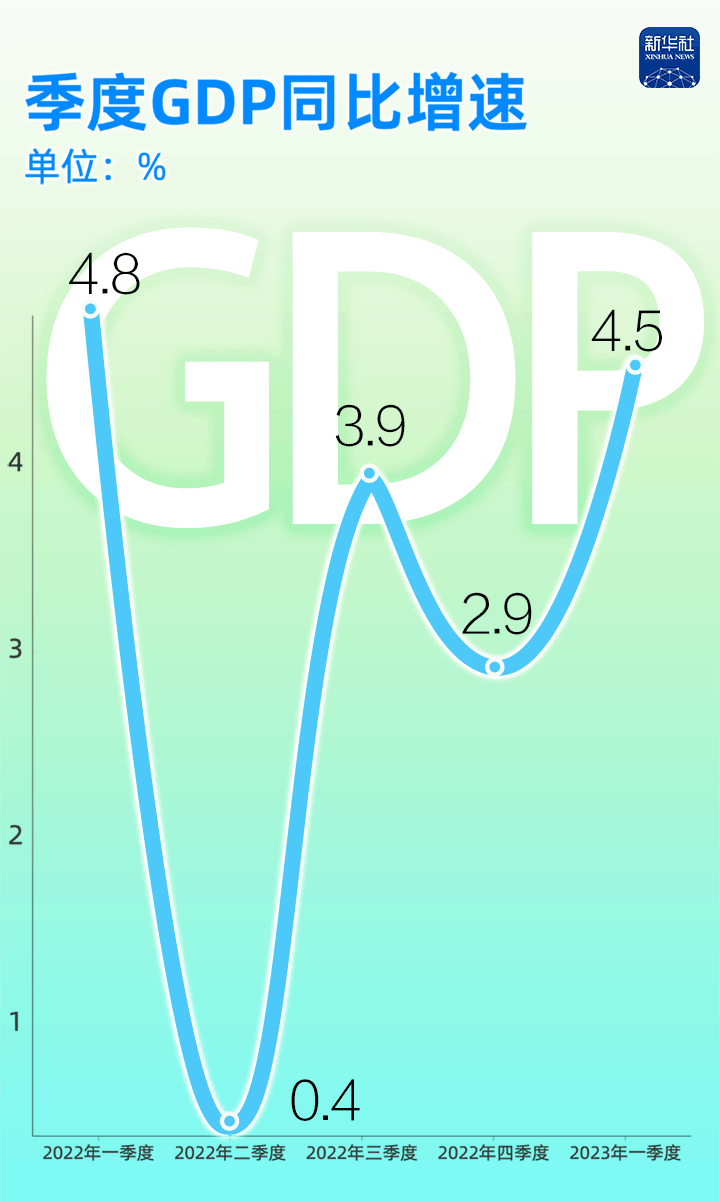 有數(shù)為證:2022年至今,我國的季度GDP同比增速分別為4.8%、0.4%、3.9%、2.9%和4.5%,一季度GDP增速達到了2022年二季度以來最高水平。