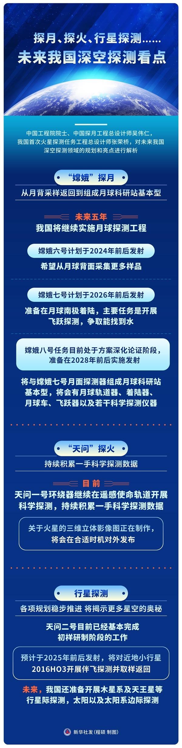 “新華視點”記者采訪了中國工程院院士、中國探月工程總設計師吳偉仁,我國首次火星探測任務工程總設計師張榮橋,對未來我國深空探測領域的規劃和亮點進行解析。