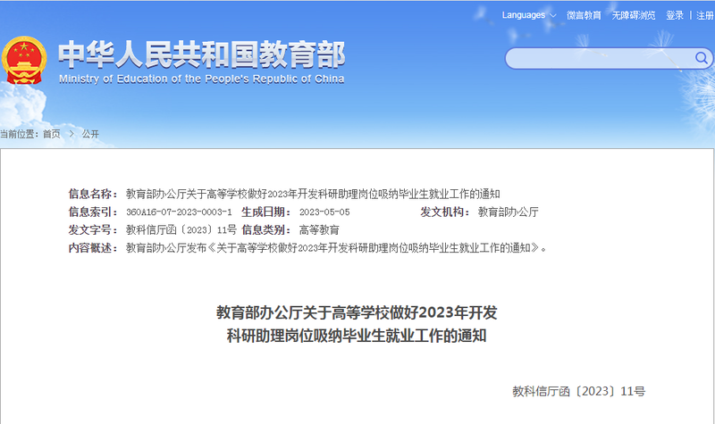中國青年報客戶端北京5月9日電(中青報·中青網(wǎng)記者 葉雨婷)記者今天從教育部獲悉,教育部辦公廳發(fā)布“關(guān)于高等學(xué)校做好2023年開發(fā)科研助理崗位吸納畢業(yè)生就業(yè)工作的通知”指出,要加強(qiáng)組織領(lǐng)導(dǎo),統(tǒng)籌科研、人事、財務(wù)、就業(yè)等相關(guān)部門,充分挖掘資源和自身潛力,切實推進(jìn)開發(fā)科研助理崗位吸納2023屆高校畢業(yè)生就業(yè)工作。教育部將把科研助理崗位及實聘人數(shù)作為安排推薦免試攻讀研究生名額的重要參考因素。