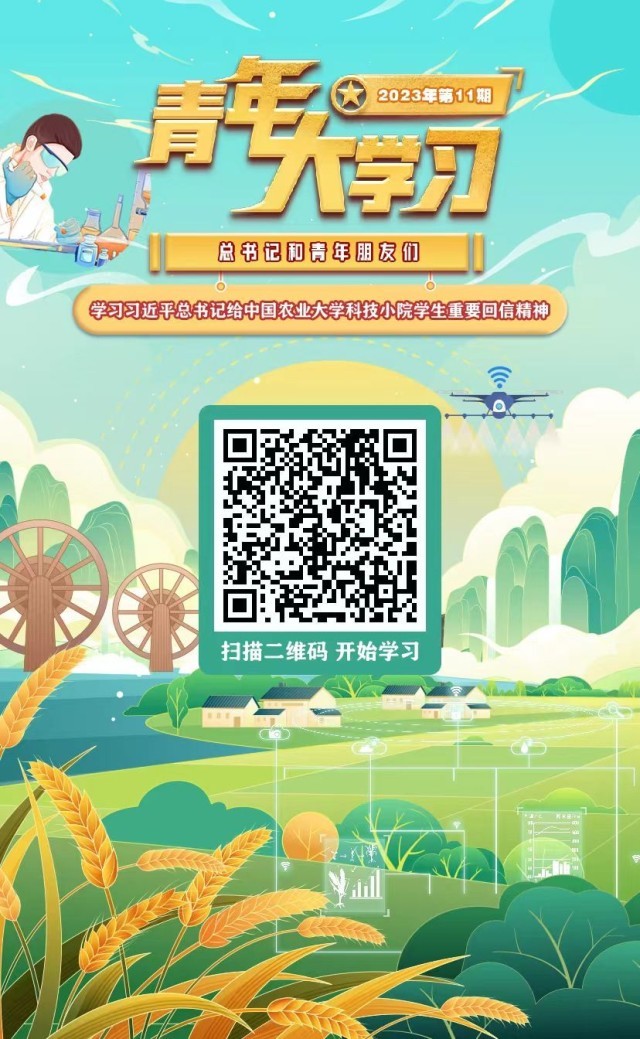 中國青年報客戶端訊(中青報·中青網記者 杜沂蒙)5月15日,由共青團中央宣傳部和中國青年報·中青在線聯合推出的“青年大學習”網上主題團課2023年第11期上線。今年五四青年節前夕,習近平總書記給中國農業大學科技小院的學生回信,對學校科技小院學生提出殷切期望,深切勉勵同學們厚植愛農情懷、練就興農本領,在鄉村振興的大舞臺上建功立業,為加快推進農業農村現代化、全面建設社會主義現代化國家貢獻青春力量。本期“青年大學習”網上主題團課“學習習近平總書記給中國農業大學科技小院學生重要回信精神”,帶領廣大團員青年一起學習相關內容。截至目前,2023年第10期參與學習互動的人數為54799498人,總點擊量為85962618。