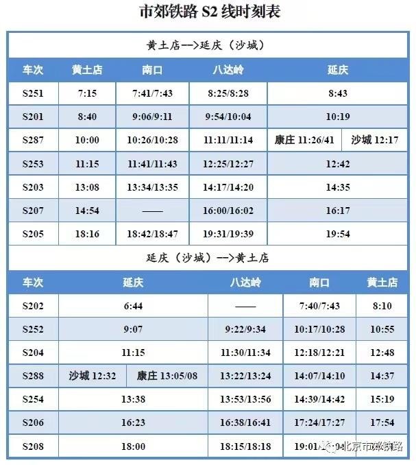 6月21日至22日 北京市郊鐵路S2線每日開行7對列車