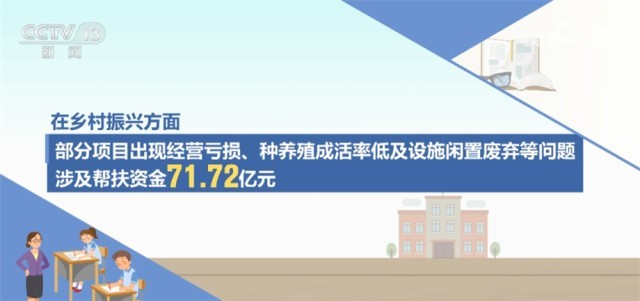 在鄉村振興方面,部分項目出現經營虧損、種養殖成活率低及設施閑置廢棄等問題,涉及幫扶資金71.72億元。