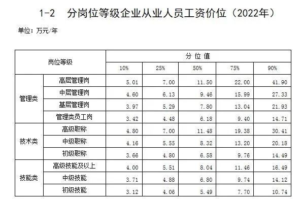 分崗位等級企業從業人員工資價位(2022年)。來自人社部網站