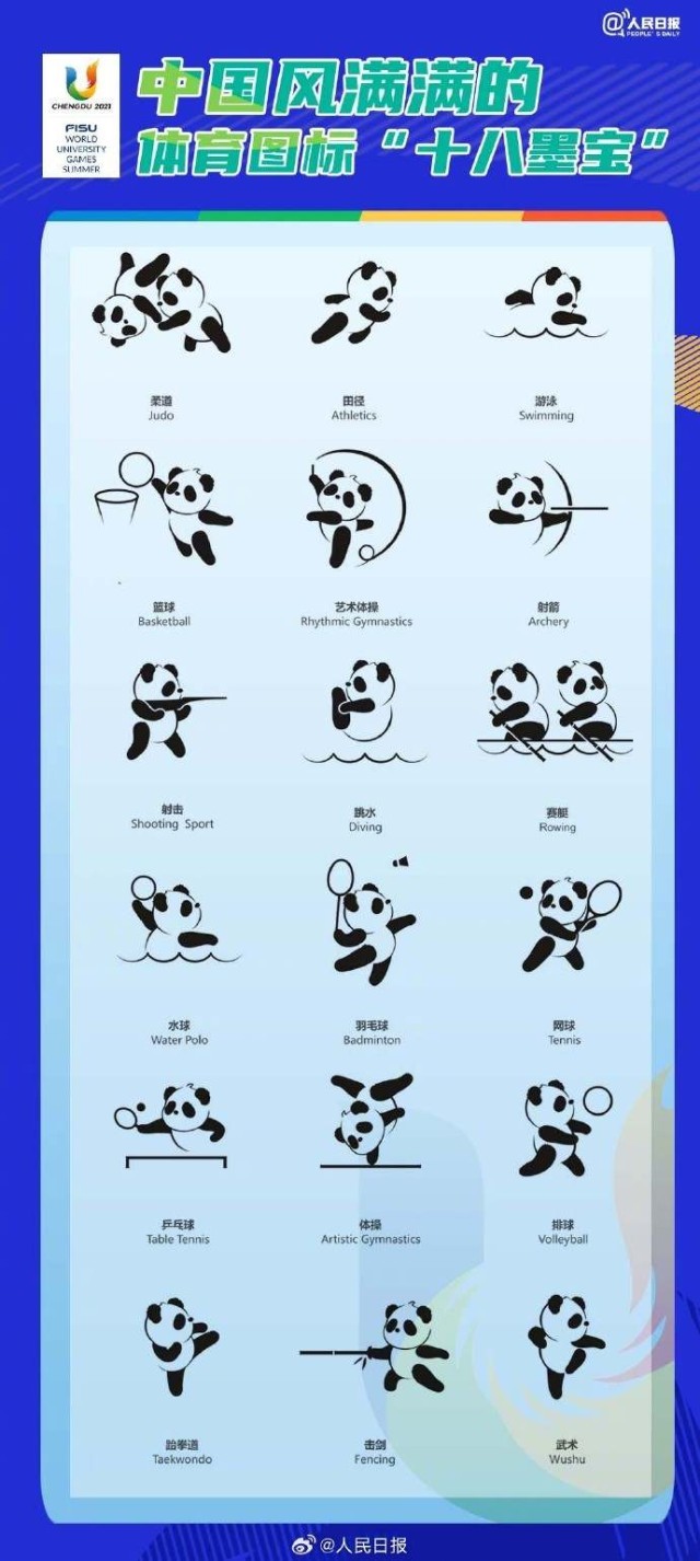 第31屆世界大學生夏季運動會將于7月28日—8月8日在四川成都舉辦。“蓉寶”“蓉火”“蓉光”,傻傻分不清?可愛的熊貓圖標,認得出是哪個項目嗎?此外,這些體壇名將曾參加過大運會!成都大運會還有2周開幕,期待!