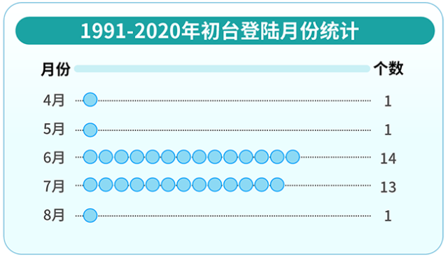 1991-2020年初臺登陸月份統計 丁茜制圖