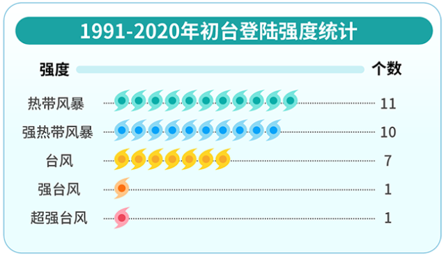1991-2020年初臺登陸強度統計 丁茜制圖