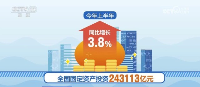 今年上半年,全國固定資產投資243113億元,同比增長3.8%。