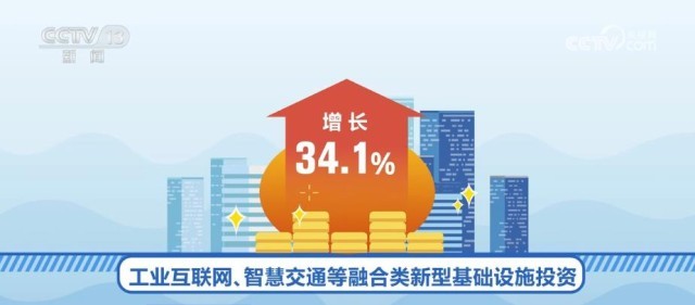 基礎設施投資中,新型基礎設施建設投資同比增長16.2%。其中,5G、數據中心等信息類新型基礎設施投資增長13.1%;工業互聯網、智慧交通等融合類新型基礎設施投資增長34.1%。