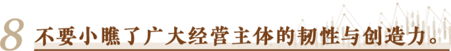 書寫這份“中國經濟半年報”的,不光是宏觀政策的制定者,還有億萬經營主體。它們在市場經濟風風雨雨中摸爬滾打過來,承載著就業,創造著財富,推動著創新,體現著社會責任。無論是服務業還是制造業,無論是傳統產業還是戰略性新興產業,哪一行哪一業,缺得了充滿活力的經營主體?看宏觀政策是否有效,標準之一就是看能否持續廣泛激發經營主體的活力。一句話,任何時候都不要小瞧了廣大經營主體的韌性與創造力,尊重他們,幫助他們,相信他們。