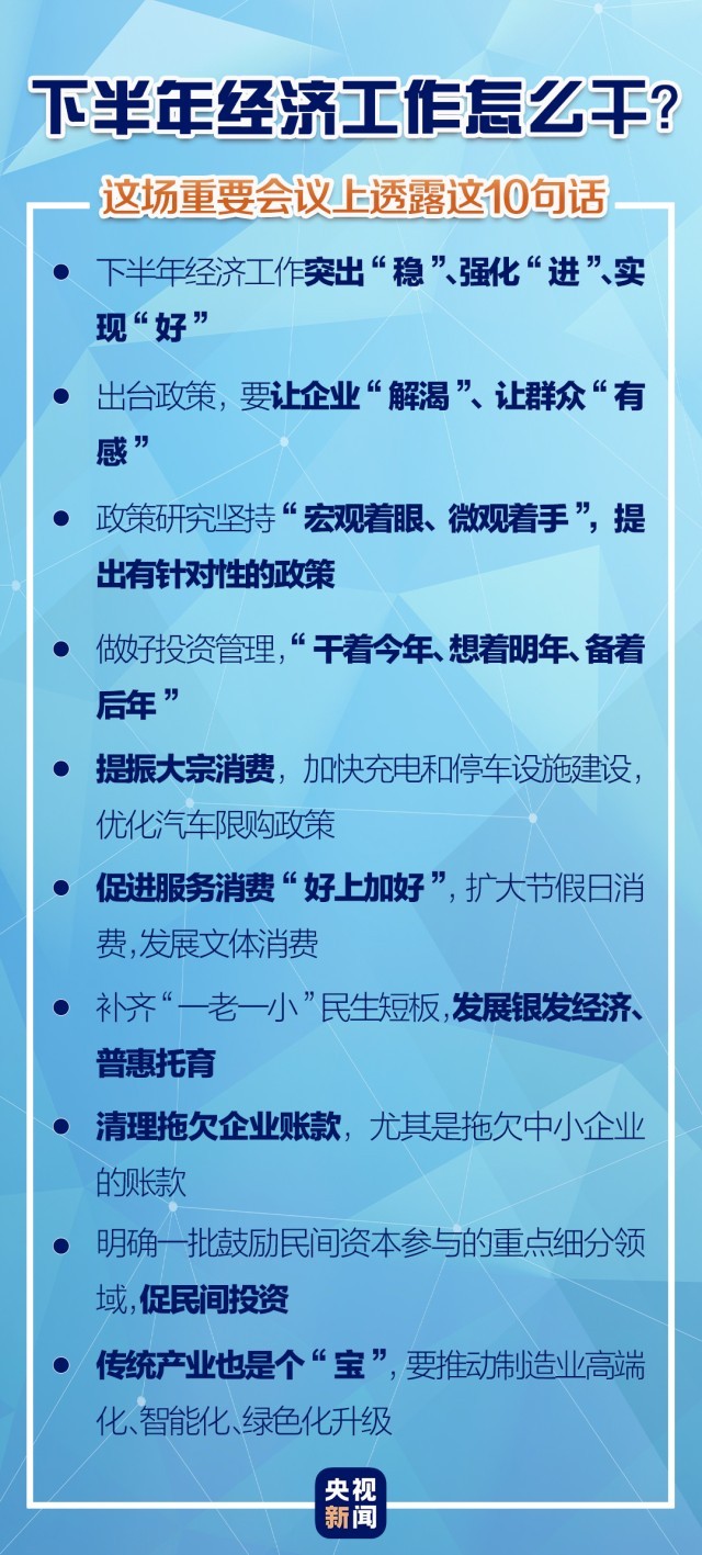 下半年經濟怎么干?這場重要會議上透露這10句話