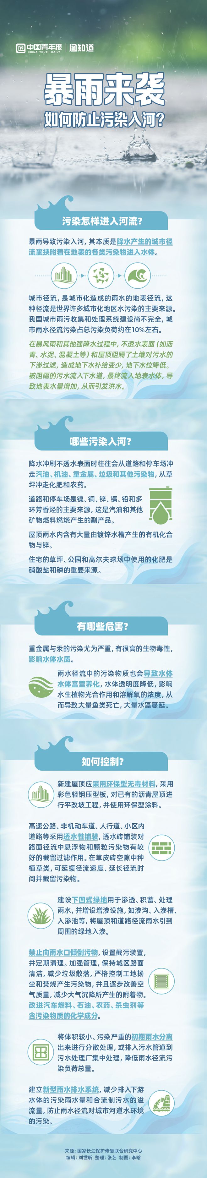 近日,臺風“杜蘇芮”給我國多地帶來暴雨甚至大暴雨。中央氣象臺今天繼續發布暴雨紅色預警。暴雨來襲,哪些污染物會被沖進河流?它們如何影響河流,又該如何控制?讀圖了解。