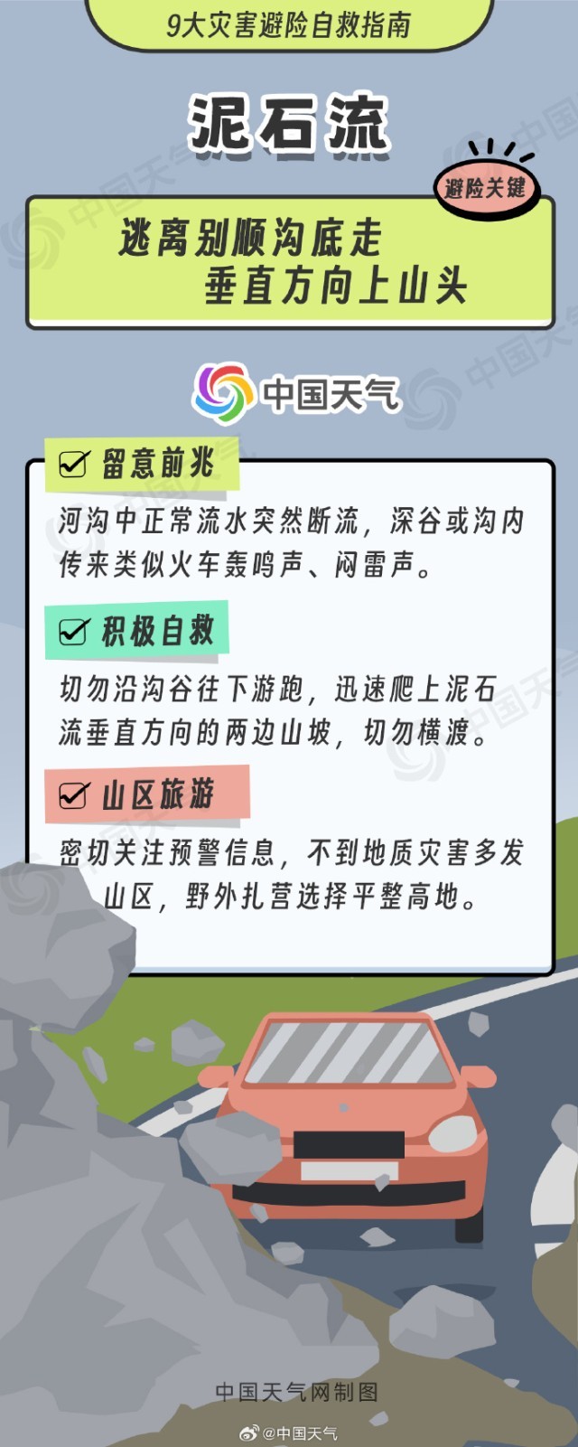 雨后山區(qū)道路沿線易發(fā)生落石,大家請避免在陡峭石壁或凸石下停留,當(dāng)災(zāi)害發(fā)生時(shí)要迅速向崩塌體兩側(cè)逃生;房前屋后土體突然鼓脹,局部出現(xiàn)滑塌或裂縫,并有水流滲出時(shí),要警惕滑坡災(zāi)害,快速向滑動方向兩側(cè)逃離;地面出現(xiàn)環(huán)狀裂縫,地形下凹或地表水快速滲漏,建筑物出現(xiàn)傾斜開裂時(shí),要迅速遠(yuǎn)離沉陷地帶。
