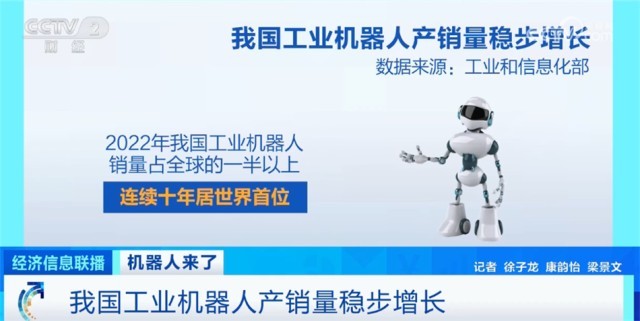 數(shù)據(jù)顯示,2022年,我國工業(yè)機(jī)器人銷量占全球的一半以上,連續(xù)十年居世界首位。2023年上半年,我國工業(yè)機(jī)器人產(chǎn)量達(dá)22.2萬套,同比增長5.4%。