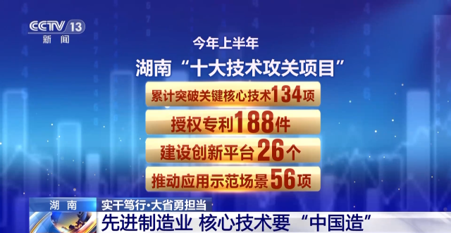 今年上半年,湖南“十大技術攻關項目”累計突破關鍵核心技術134項,授權專利188件,建設創新平臺26個,推動應用示范場景56項。與此同時,湖南正在加快推進省級“四大實驗室”的建設,為先進制造業創新研發提供基礎研究和成果轉化的保障。