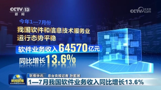 64570億元。工業和信息化部統計顯示,今年1—7月份,我國軟件和信息技術服務業運行態勢平穩,軟件業務收入64570億元,同比增長13.6%,利潤總額同比增長13.4%。