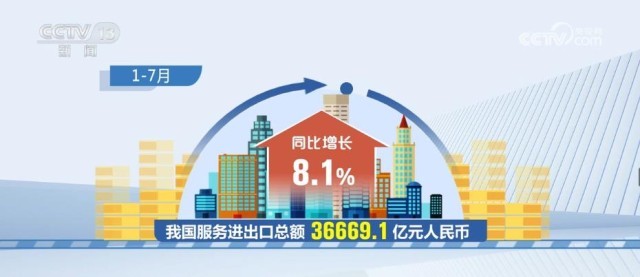 數據顯示,1月—7月,我國服務進出口總額36669.1億元人民幣,同比增長8.1%。