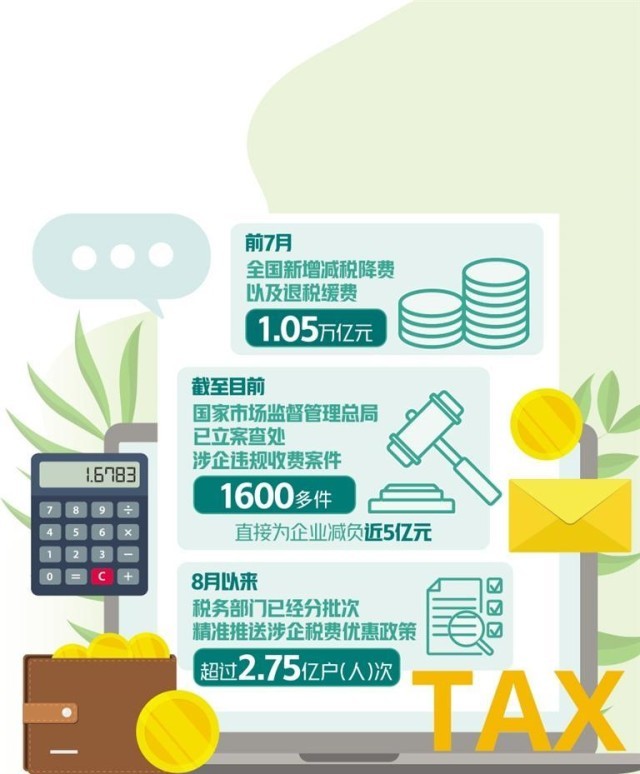 最新數據顯示,前7月,全國新增減稅降費以及退稅緩費1.05萬億元。今年以來,我國聚焦支持做強做優實體經濟、促增收擴消費、推動高水平科技自立自強、支持戰略性新興產業發展等多方面舉措,打出一套稅費政策組合拳,實打實支持企業紓困發展。