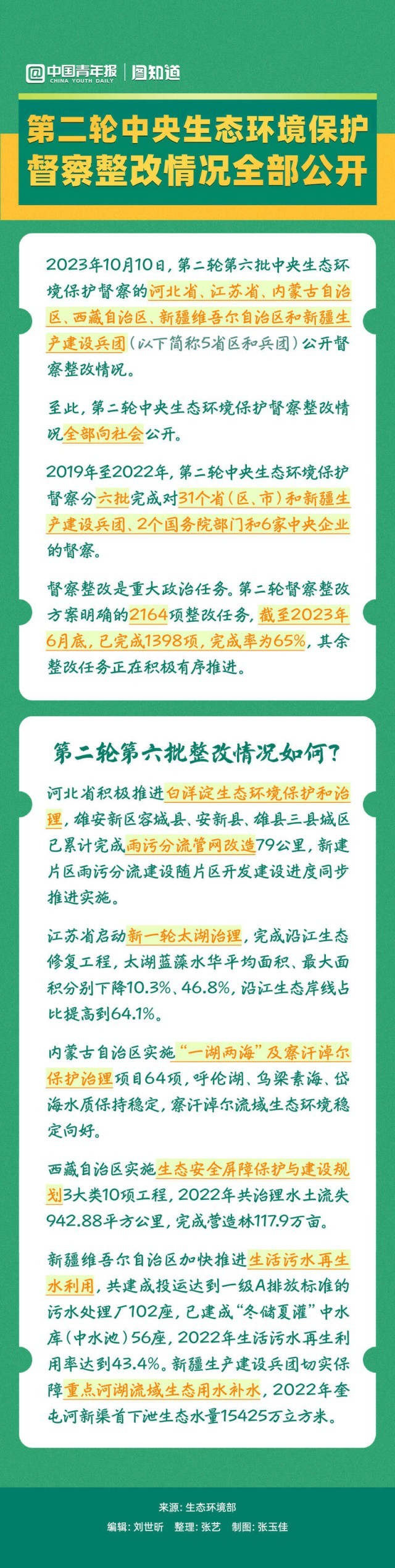 今年10月10日,第二輪第六批中央生態環境保護督察公開督察整改情況。至此,第二輪中央生態環境保護督察整改情況全部向社會公開。最新一批公布的整改情況如何?一圖讀懂。