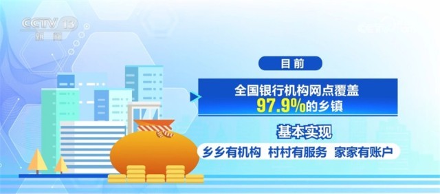 目前,全國銀行機構網點覆蓋97.9%的鄉鎮,基本實現鄉鄉有機構、村村有服務、家家有賬戶。全國鄉鎮基本實現保險服務全覆蓋,大病保險已覆蓋12.2億城鄉居民。農業保險已覆蓋農林牧漁各領域。