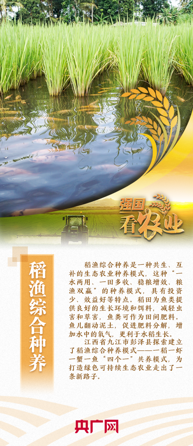 “這是一種糧漁共生雙贏的稻漁綜合種養(yǎng)模式,具有三大特點(diǎn):以糧為主、生態(tài)優(yōu)先、產(chǎn)業(yè)化發(fā)展。”看著魚兒在田間自在活潑地游來游去,彭澤縣稻漁綜合種養(yǎng)模式最早實(shí)踐者黃國平滿心歡喜地說。